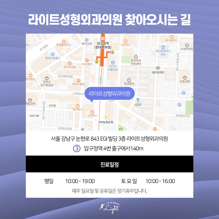 안녕하세요, 라이트성형외과입니다.