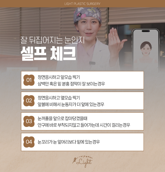 ✓ 손으로 눈꺼풀을 당겼을 때,